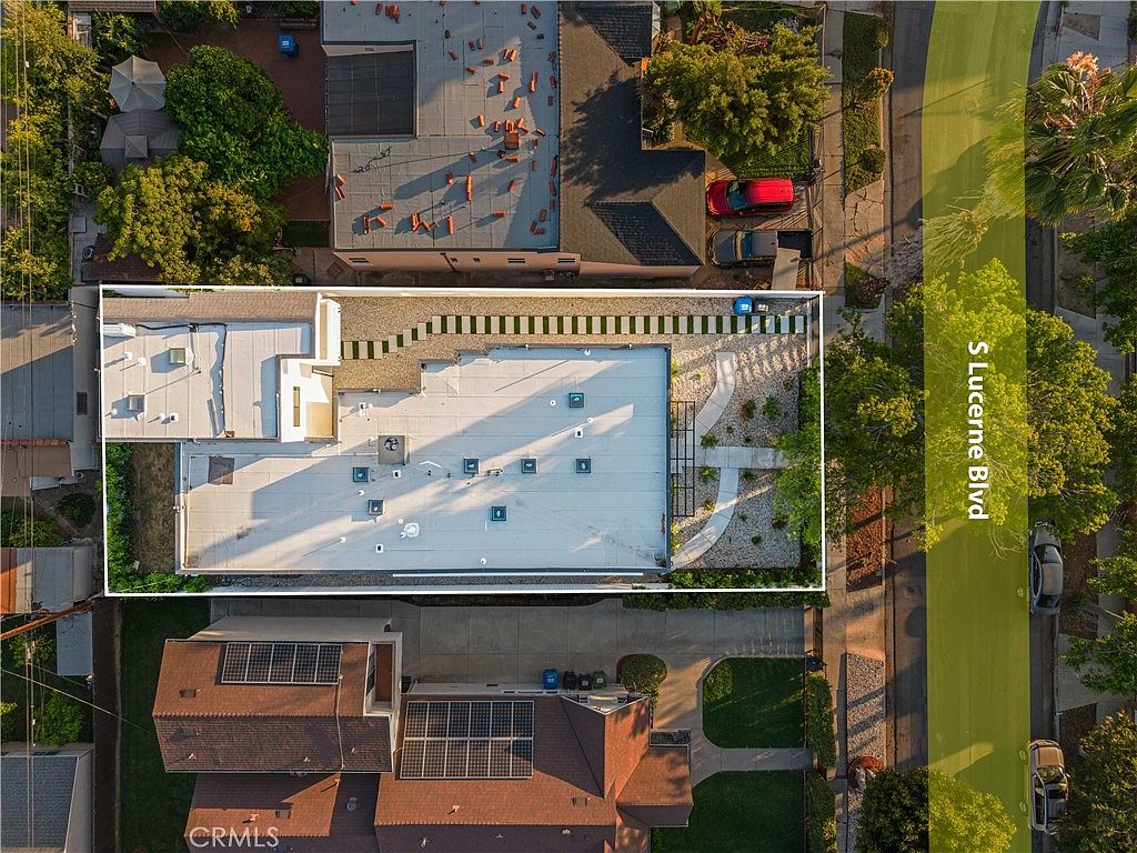 Lucerne is capped at Pico on the south, which means no through traffic past the house. The block has the stillness of a residential enclave without leaving the center of the city.